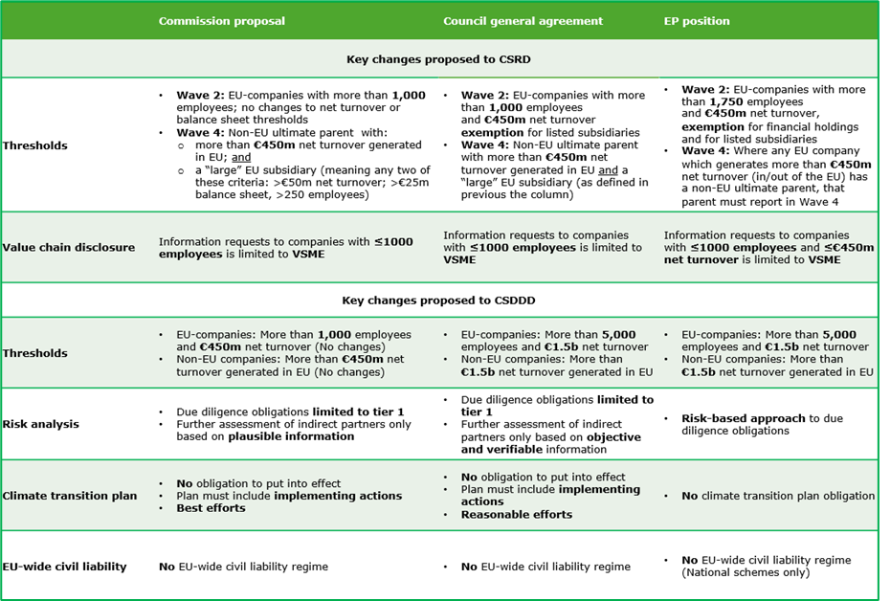 In addition, the EP’s position also introduces changes designed to assist companies to comply with CSRD reporting obligations: